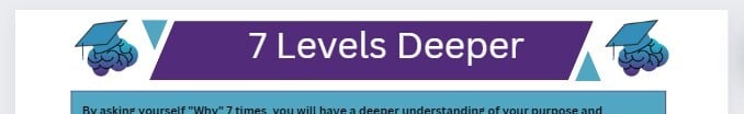 The 7 levels Deeper worksheet provides insight and guidance via a though-provoking series of questions designed to get to the root of why YOU want what you want. This will uncover what truly motivates you to take action.